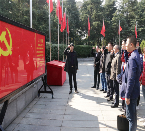 公司黨總支全體黨員胸前佩戴黨徽,于11月29日上午11時到達韶山。青山肅穆、白云俯首,在毛主席銅像廣場,首先由黨總支書記李方愛同志帶領(lǐng)全體黨員敬獻了花籃,全體黨員鞠躬致敬,繞銅像一周,深切緬懷毛澤東同志。隨后,全體黨員在黨旗下重溫入黨誓詞,參觀毛澤東同志故居。